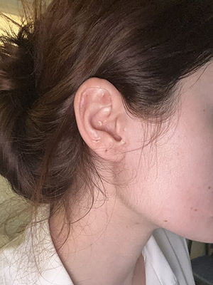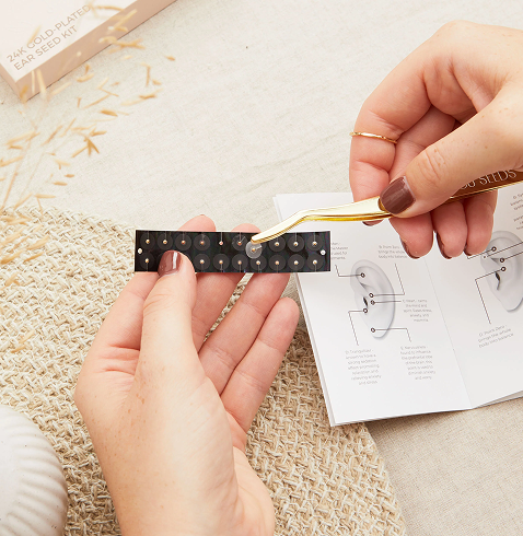 Tiny ear seeds are placed on pressure points on the ear.