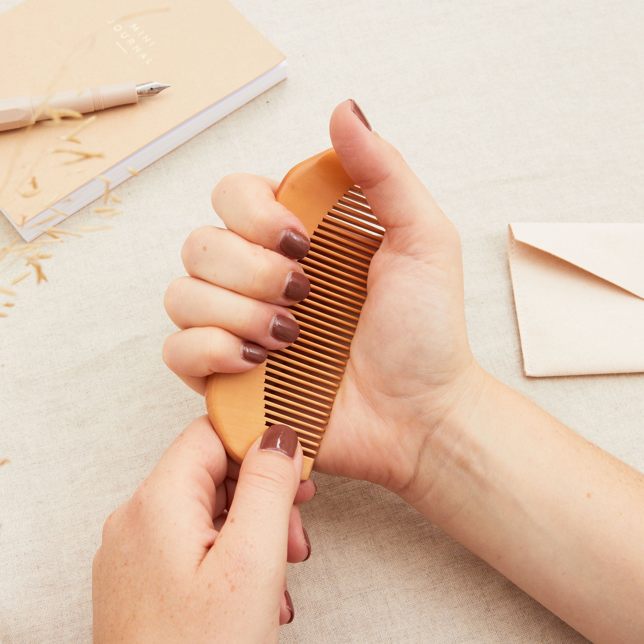 Grip & Press – Hold the comb firmly, pressing the teeth against your palm.