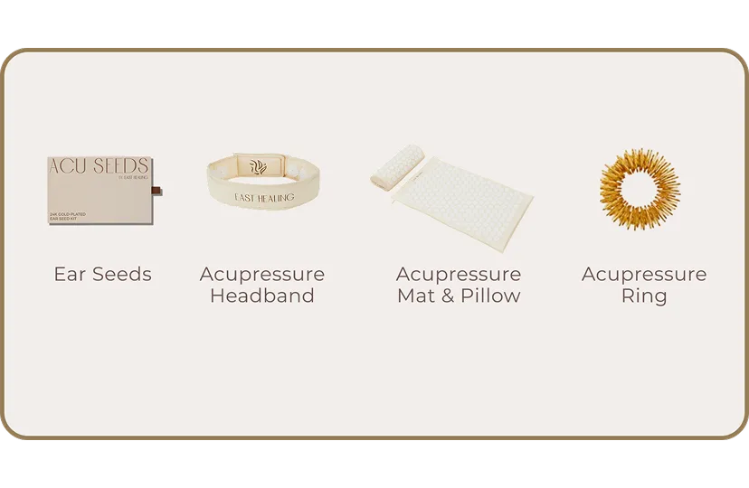 Get 20% off a 24K gold-plated ear seed kit, an acupressure mat and pillow, and an acupressure headband, plus a FREE acupressure ring.